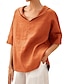 Damen Bluse 100% Leinen Patchwork Einfach Elegant Stilvoll Halbarm Mit Kapuze Normale Oberteile Täglich Ferien Ausgehen Schwarz Weiß Gelb Orange Braun Sommer Frühling