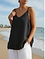 Damen Extraklein Baumwoll-Leinen-Hemden Camisole-Tanktop Leinenweste Rückenfrei Einfarbig Lässig Strand Ärmellos V Ausschnitt Normale Oberteile Täglich Strandbekleidung Urlaubskleidung Blau Schwarz