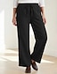 Damen Hose aus Baumwollleinen Komfort Einfarbig Tasche Elastischer Bund Atmungsaktiv Mikroelastisch Heim Schwarz Weiß Khaki Sommer