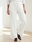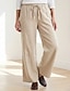 Damen Baumwoll Mischung Hose aus Baumwollleinen Weites Bein Stoffhosen Mode Streetwear Volle Länge Natürliche Taille Einfach Tasche Elastisches Kordelzugdesign Bequem Außenbereich Straße Ferien
