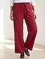Damen Hose aus Baumwollleinen Weites Bein Chinos Urlaub Streetwear Basic Volle Länge Mittlere Taillenlinie Einfach Kordelzug Tasche Bequem Komfort Unelastisch Täglich Outdoor Straße Weinrot Hellgrau