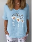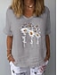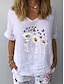 Damen Leinenhemd T Shirt T-Shirt Druck Blumen Grafik Mode Klassisch Lässig Kurzarm V Ausschnitt Normale Oberteile Täglich Ausgehen Wochenende Weiß Gelb Marineblau Grau Leicht Blau Sommer Frühling