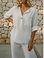 Damen Hemd Leinenmischung Knopfleiste Bluse Knöpfe Einfarbig Einfach Streetwear Basic Lässig Langarm Hemdkragen Normale Oberteile Lässig Täglich Wochenende Weiß Frühling Herbst