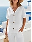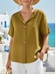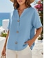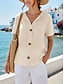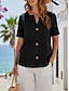 Damen Hemd Leinenhemd Bluse Knöpfe Einfach Aktiv Stilvoll Kurzarm V Ausschnitt Normale Oberteile Täglich Outdoor Ferien Schwarz Weiß Gelb Marineblau Himmelblau Sommer Frühling