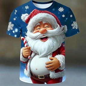Weihnachten Herren Weihnachtsmann T Shirt Kurzarm T-Shirt 3D-Druck Rundhalsausschnitt Hemd Täglich Designer Künstlerisch Urlaub Party Straße Blau Rote Purpur Ganzjahres Bekleidung S M L XL XXL XXXL