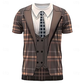 Herren Smoking Kostüm T Shirt Kurzarm T-Shirt 3D-Druck Rundhalsausschnitt Hemd Übertrieben Designer Party Ferien Club Braun Sommer Frühling Bekleidung S M L XL XXL XXXL