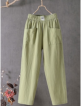 Damen Übergröße Sommerhose 100% Baumwolle Einfach Lässig Komfort Knöchellang Natürliche Taille Einfarbig Mikroelastisch Heim Straße Blau Weiß Grün Khaki Sommer Frühling