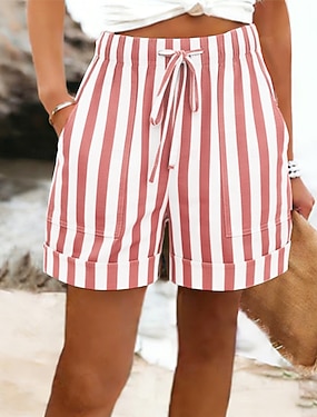 Damen Shorts aus Baumwollleinen Chinos Shorts Sommershorts Urlaub Mode Basic Kurz Hohe Taille Gestreift Kordelzug Tasche Elastischer Bund Komfort Weich Atmungsaktiv Unelastisch Streetwear Strand