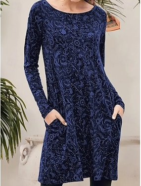 Damen Knielanges Kleid Freizeitkleid T-Shirt-Kleid Sommerkleid A Linie Kleid Elegant Urlaub Lässig Normale Passform Blumen Grafik Langarm Rundhalsausschnitt Rosa Rote Blau Grün Herbst Winter