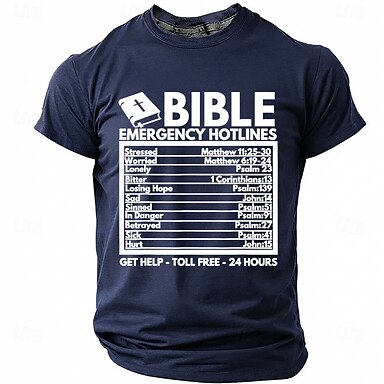 Bibel-Notrufnummern-T-Shirt für Herren, religiöses, inspirierendes christliches spirituelles T-Shirt mit Grafik, Rundhalsausschnitt, Kurzarm, inspirierendes Geschenk für Gläubige, Designer-Kleidung