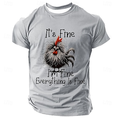 Herren Hahn Lustig T Shirt Kurzarm T-Shirt 3D-Druck Rundhalsausschnitt Hemd Übertrieben Designer Party Ferien Hellblau Sommer Frühling Bekleidung S M L XL XXL XXXL