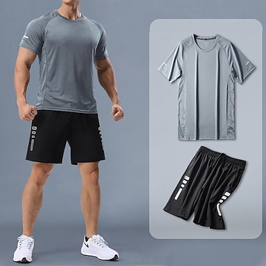 Herren Einfarbig Trainingsanzüge 2-teiliges Sport-Set Sommer Kurzarm Schnelltrocknend Kompression Feuchtigkeitsableitend Fitnesstraining Aktives Training Übung Schwarz / Weiß Schwarz Hellgrau