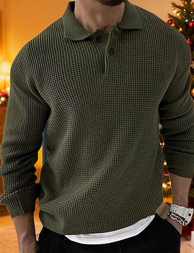 Herren Pullover Gerippt Stricken Abgeschnitten Gestrickt Umlegekragen Moderne zeitgenössische Alltagskleidung Ausgehen Bekleidung Herbst Winter Armeegrün M L XL