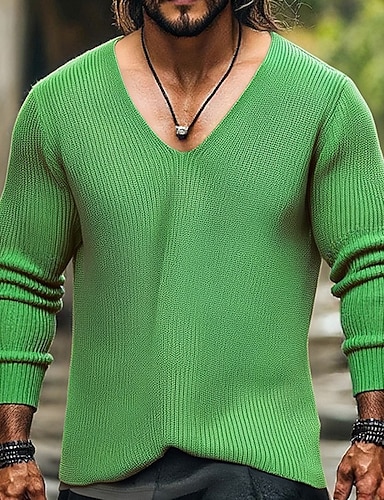 Herren Pullover Strickpullover Gerippt Stricken Standard Strick Glatt V Ausschnitt Modisch Basic Freizeitskleidung Verabredung Bekleidung Herbst Winter Schwarz Blau S M L