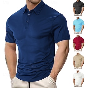 Herren Polo Poloshirts Urlaub Straße Revers Kurzarm Mode Modern Einfach Knöpfe Atmungsaktiv Sommer Frühling Normale Passform Schwarz Weiß Wein Marineblau Khaki Leicht Blau Polo