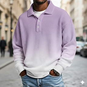 Herren Farbverlauf Waffel-Poloshirts Langarm Polo-Shirts Revers Lässig Schule Athleisure Alltagskleidung 3D-Druck Frühling Herbst Winter Schwarz Marineblau Himmelblau