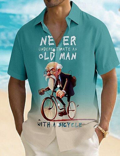 Herren Fahhrad Alter Mann Lustiger Slang Hemd Sommerhemd Knopfhemd Kurzarm Vintage-Retro Outdoor Strandurlaub Sommer Frühling Umlegekragen 3D-Druck Leinenähnliches Hemd Blau Schwarz Rote Grün