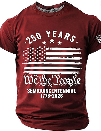 4. Juli 2026 250. Herren Einfarbig Amerikanische US-Flagge T Shirt Kurzarm T-Shirt 3D-Druck Rundhalsausschnitt Hemd Vintage-Retro Patriotisch Täglich Festival Blau Schwarz Burgunderrot Sommer Frühling