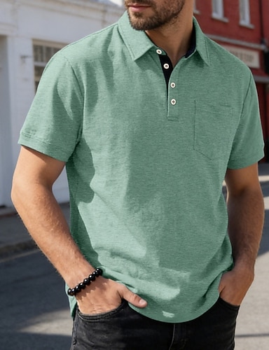 Herren Poloshirts Lässig Straße Revers Kurzarm Basic Modern Einfach Knöpfe Atmungsaktiv Sommer Frühling Normale Passform Schwarz Burgunderrot Marineblau Kamel Grün Leicht Blau Poloshirts