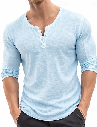 Herren T-Shirt Leinen-T-Shirt Langarm Einfarbig Einfach Einheitliche Farbe Urlaub Lässig Knöpfe Rein Henley Lässig Täglich Outdoor Frühling & Sommer Sommer Frühling Blau Schwarz Rosa Henley T-Shirt