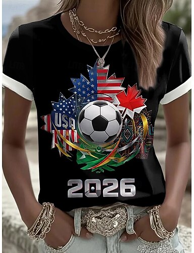 Damen T Shirt Druck Grafik Stilvoll Klassisch Lässig Kurzarm Rundhalsausschnitt Normale Oberteile Lässig Täglich Sport Blau Schwarz Weiß Rosa Rote Sommer Frühling
