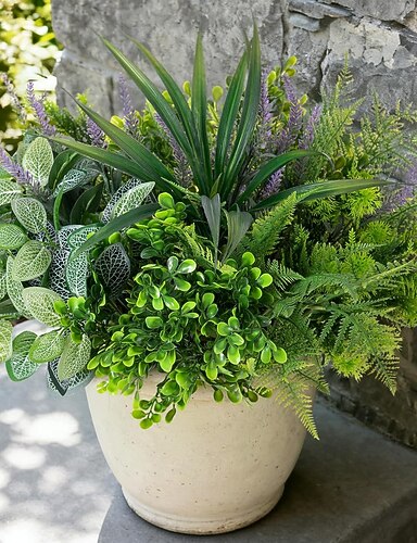 UV-beständige Kunstpflanzen für den Außenbereich – 12 realistische Sträuße aus künstlichem Eukalyptus, Farn und Lavendel für Terrasse, Garten und Veranda. Wetterfeste Kunstpflanzen für draußen.