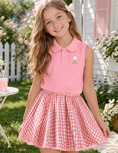 2 Stück Kinder Mädchen Karomuster Anzüge einstellen Ärmellos Aktiv Outdoor Ab 4 Jahren Sommer Rosa