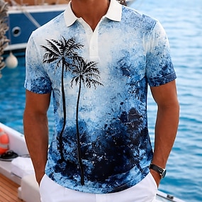 Herren Palme Hawaiianische Polohemden Kurzarm Polo-Shirts Revers Lässig Athleisure Alltagskleidung Urlaubskleidung 3D-Druck Knöpfe Atmungsaktives Gewebe Frühling & Sommer Blau Braun Grün
