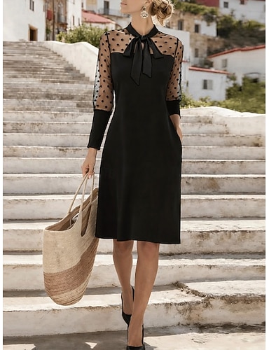 Damen Minikleid Kleid für Hochzeitsgäste Chiffonkleid Stufenkleid Mode Modern Outdoor Ferien Ausgehen Normale Passform Einfach Halbarm Rundhalsausschnitt Blau Schwarz Rosa Frühling Herbst