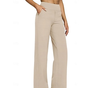 Damen Chinos Hosen Hose Gerade Urlaub Mode Streetwear Volle Länge Hohe Taille Einfarbig Tasche Bequem Komfort Weich Mikroelastisch Outdoor Straße Aprikose Schwarz Weiß Rosa Frühling Herbst Lässiger