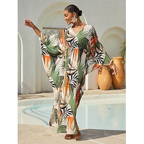Maxikleid aus Satin mit tropischem Pflanzenmuster und Dolmanärmeln für den Urlaub