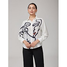 weißes Langarmhemd mit künstlerischem Print