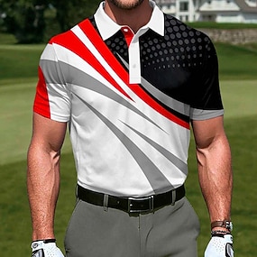 Herren Geometrisch Golf Sport-Poloshirts Kurzarm Polo-Shirts Hemden mit Kragen Lässig Athleisure Knöpfe Sommer Frühling Rote Grün Grau