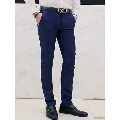 Herren Abschlußfeier Anzughose Hose Chinohose Reißverschluss Einfach Knöchellang Hochzeit Party Arbeit Mode Geschäftlich Meerblau Schwarz Mikroelastisch