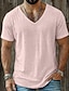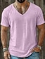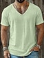 Herren T-Shirt Leinen-T-Shirt Kurze Ärmel V Ausschnitt Sommer Einfach Mode Designer Basic Weich Lässig Urlaub Straße Blau Meerblau Schwarz Top T-Shirt für Herren