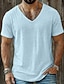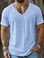 Herren T-Shirt Leinen-T-Shirt Kurze Ärmel V Ausschnitt Sommer Einfach Urlaub Mode Basic Schlank Weich Urlaub Straße Alltagstauglich Hellblau Meerblau Schwarz Top T-Shirt für Herren