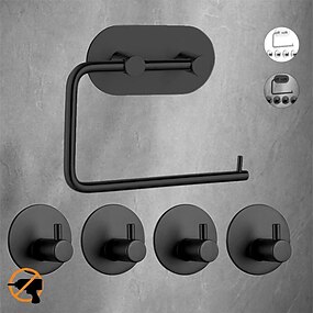 Selbstklebender Toilettenpapierhalter und 4-teiliges Kleiderhaken-Edelstahl-Badezimmer-Accessoire-Set zur Wandmontage