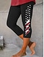 Unabhängigkeitstag Patriotische Damen Capri-Hosen Leggings Urlaub Hawaiianisch Stilvolle Capris Mittlere Taille Hosen Graphic Nationale Flagge Druck Komfort Dehnbar Outdoor Urlaub Formal Schwarz Weiß