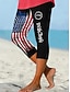 Unabhängigkeitstag Patriotische Damen Capri-Hosen Leggings Urlaub Hawaiianisch Stilvolle Capris Mittlere Taille Hose Grafik Nationale Flagge Druck Komfort Dehnbar Outdoor Urlaub Formal Blau Schwarz