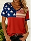 Amerikanischer Unabhängigkeitstag Damen T Shirt T-Shirt Druck Grafik Nationalflagge Stilvoll Klassisch Lässig Kurzarm V Ausschnitt Normale Oberteile Täglich Ausgehen Wochenende Blau Rote Khaki Sommer