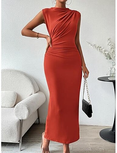 Damen Maxikleid Abschlussballkleid Partykleid Freizeitkleid Cocktailkleid Elegant Mode Modern Outdoor Abendgesellschaft Party Normale Passform Einfach Ärmellos Hoher Ausschnitt Schwarz Burgunderrot