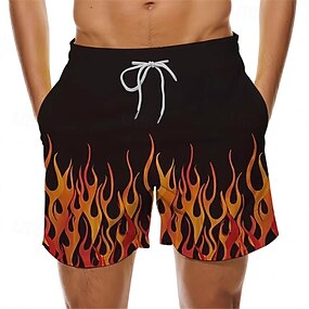 Herren Bunt Flamme Badehosen Badeshorts Boardshorts Mittlere Taille Lässig Outdoor Urlaub Alltagskleidung Seitentaschen Netzfutter Elastischer Kordelzug in der Taille Designer Bekleidung