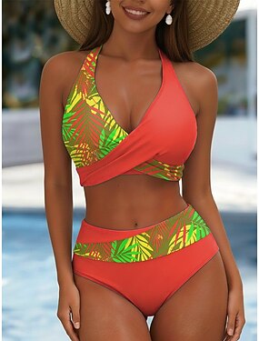 Damen Bikini 2 Teile Badeanzug Palmrock Ferienmode Floral Grafik V-Ausschnitt Ärmellose Badeanzüge