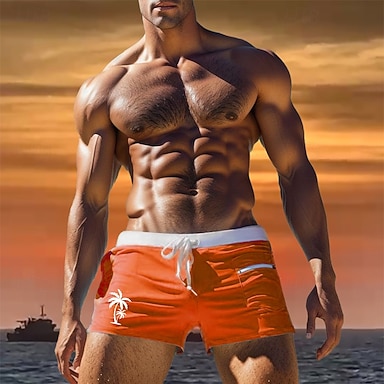 Herren Baum Kokospalme Badehosen Badeshorts Boardshorts Mittlere Taille Mode Designer Surfen Ferien Strand Kordelzug Tasche Elastischer Bund Designer Bekleidung