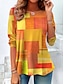 Damen T-Shirt Langarm Rundhalsausschnitt Langarm Tunika Modern Lässig Geometrischer Druck Reguläre Tops Täglicher Wein Hellbraun Blau Orange Braun Herbst Winter Vorherbst