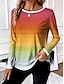 Damen T-Shirt Lange Ärmel Rundhalsausschnitt Lange Tunika Ombre Grafik Textur Vintage Stilvoll Modern Rundhals Reguläre Oberteile Täglicher Druck Blau Lila Orange Grün Herbst Vorsaison