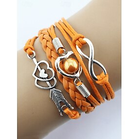 Damenarmbänder im Boho-Stil aus Legierung und Kunstleder, mehrfarbig mit Herz- und Unendlichkeitssymbolen – perfekt für Valentinstag und Freizeitkleidung
