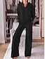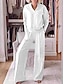 Damen Elegant Bohemien Urlaub Hosen-Sets Langarm Glockenärmel V Ausschnitt Einfarbig Schnürung Gerafft Rüsche Outdoor Urlaub Party nicht-gerade weiss Rosa Kaki Sommer Lässiger Schnitt