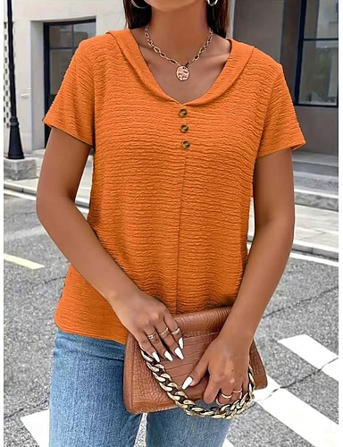 Damen T Shirt T-Shirt Knöpfe Einfach Mode Stilvoll Klassisch Kurzarm Hemdkragen Normale Oberteile Täglich Ausgehen Wochenende Marineblau Purpur Orange Grün Sommer Frühling