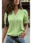 Damen Bluse Rüsche Patchwork Einfarbig Stilvoll Basic Lässig Kurzarm V Ausschnitt Normale Oberteile Täglich Weiß Armeegrün Aprikose Sommer Frühling